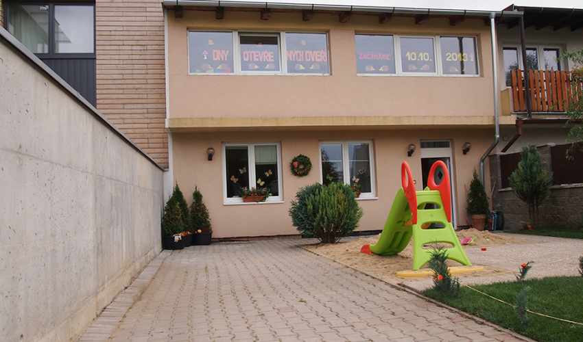 Je provozováno v řadovém domě se zahradou na celkové ploše 250 m2.